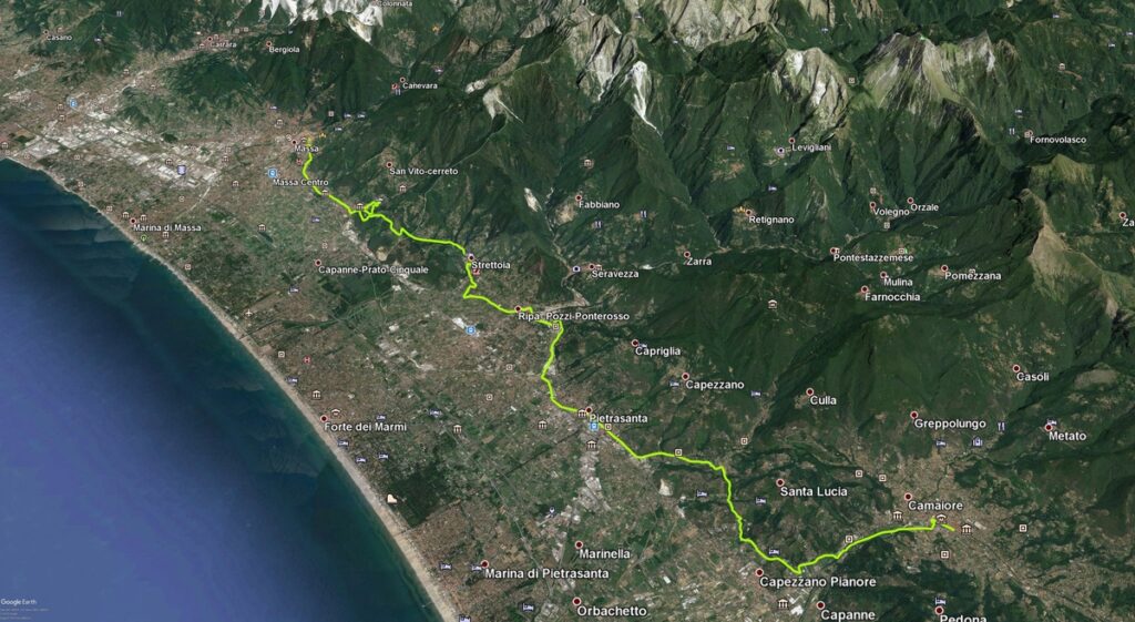 Esta es la primera etapa del 2018. Hemos volado hasta Pisa donde tomamos el tren y el bus hasta llegar a Camaiore a media tarde.